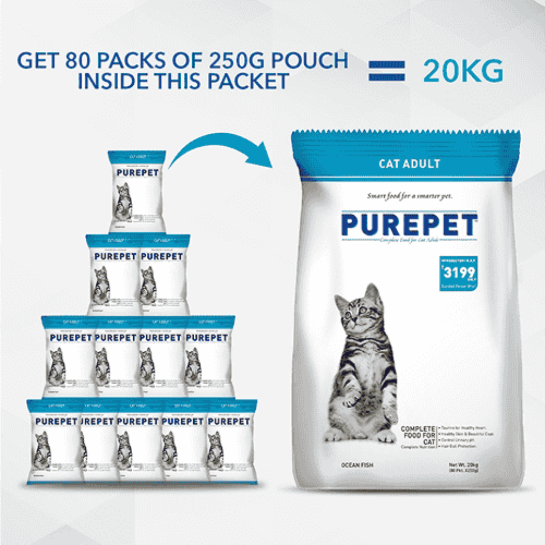 Perfect as a complete daily meal, Purepet Ocean Fish Adult Cat Dry Food supports your cat’s vitality, growth, and overall wellness with every bowl.