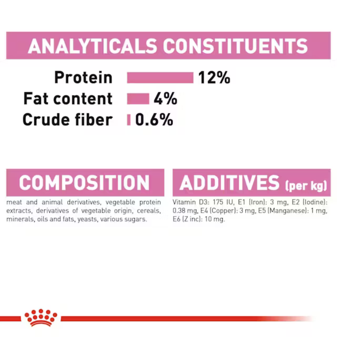 Royal Canin Kitten Jelly Wet Cat Food is designed to support the special nutritional needs of kittens up to 12 months of age. The soft texture of tender chunks in smooth jelly makes it easy for young kittens to eat, while providing complete and balanced nutrition for healthy growth.