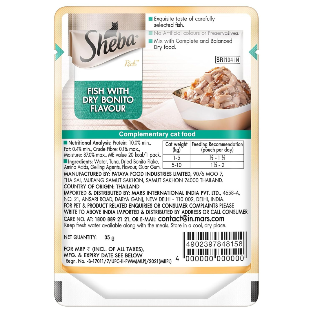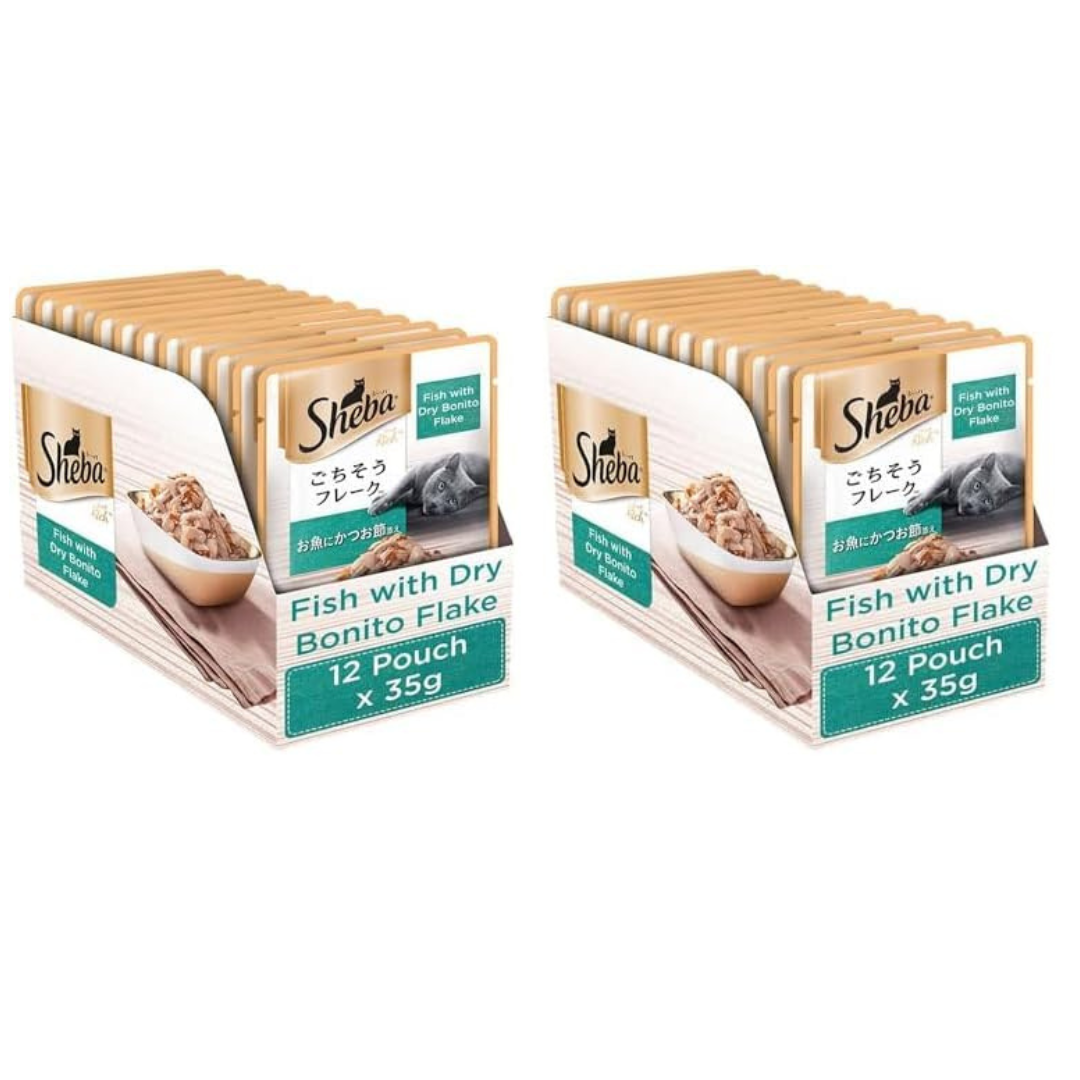 Treat your cat to the exquisite taste and premium nutrition of Sheba Fish with Dry Bonito Flake Wet Cat Food, crafted to satisfy even the most discerning feline palate.